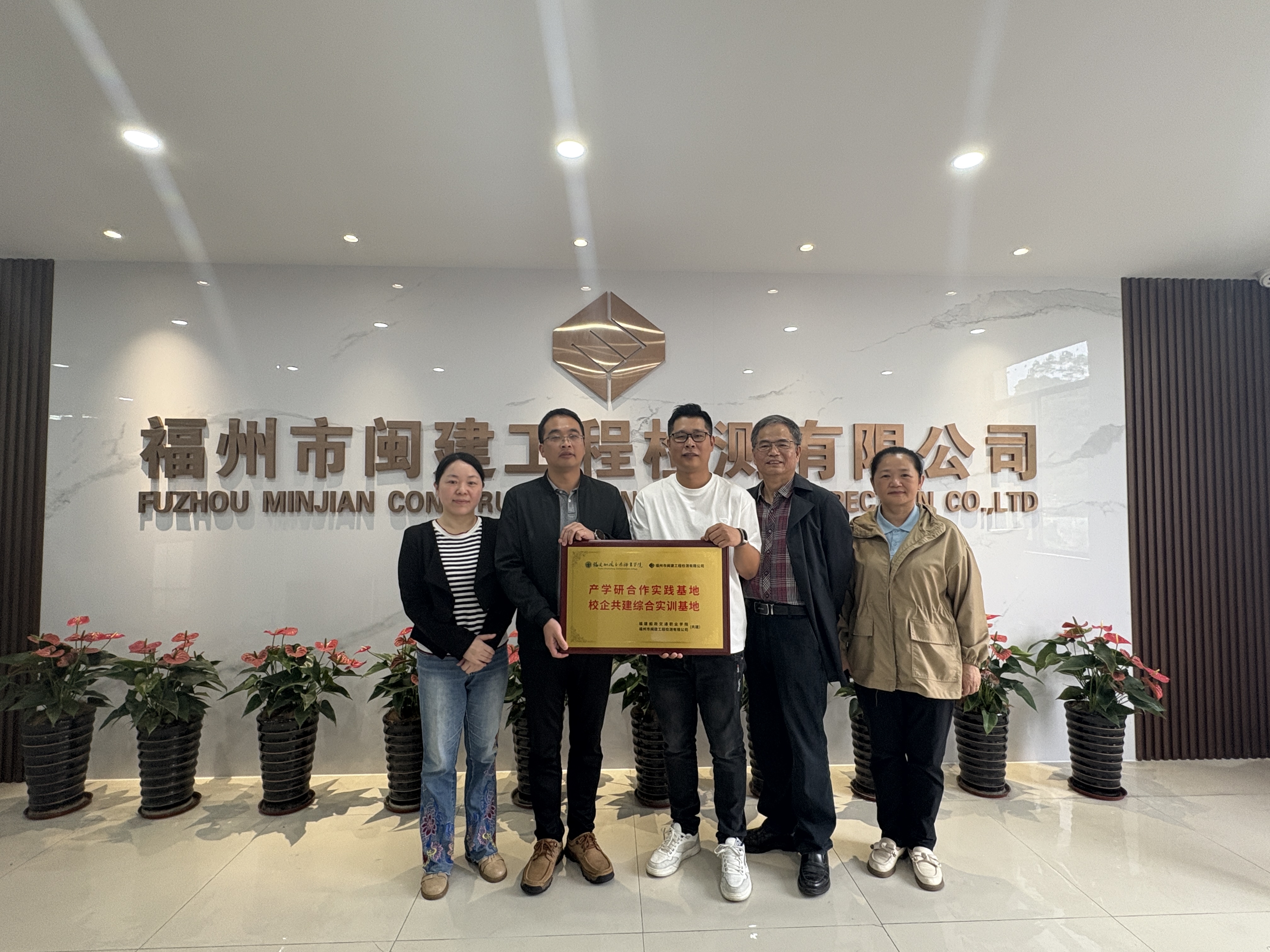 隨后,土木學(xué)院書記高杰與閩建檢測(cè)總經(jīng)理吳文岳共同為“校企共建綜合實(shí)訓(xùn)基地”揭牌。