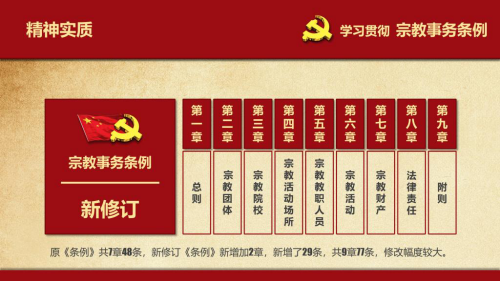| 黨的十八大以來,以習近平同志為核心的黨中央高度重視宗教工作,將宗教工作擺上更加重要的議事日程。2016年,黨中央、國務(wù)院召開全國宗教工作會議,習近平總書記發(fā)表了重要講話,從黨和國家事業(yè)發(fā)展全局的戰(zhàn)略高度,科學(xué)分析了宗教工作面臨的形勢和任務(wù),就宗教問題和宗教工作提出了一系列新思想新觀點新要求,為加強和改進新形勢下的宗教工作指明了方向、提供了遵循。 新修訂的《宗教事務(wù)條例》于2018年2月1日正式實施。出臺新修訂的《條例》,是貫徹全國宗教工作會議精神的重要舉措,對推進我國宗教工作法治化進程具有十分重要的意義。