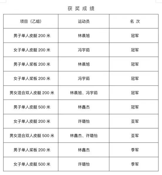 學院水上運動隊首度亮相中國大學生皮劃艇錦標賽,參加高職高專組(乙組)比賽,隊員們奮力拼搏,展現(xiàn)出了良好的競技狀態(tài),最終獲得6金2銀2銅的佳績。我校代表隊代還獲得體育道德風尚獎、林杰獲得優(yōu)秀教練員稱號、林晨旭獲得優(yōu)秀運動員稱號。