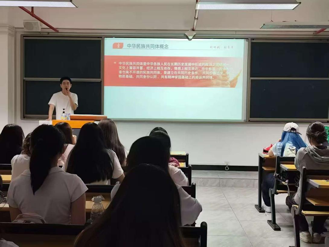 主題班會是本次活動的開篇之作。班會上,由輔導(dǎo)員通過 PPT 展示,向同學(xué)們介紹了我國各民族的分布、人口、語言、風(fēng)俗習(xí)慣等基本情況,讓同學(xué)們對我國的民族大家庭有了更全面的了解。各民族在相互學(xué)習(xí)、交流融合中形成的獨(dú)特風(fēng)貌和共同價(jià)值追求。隨后,來自不同民族的同學(xué)紛紛上臺分享自己的民族故事、風(fēng)俗習(xí)慣以及在與其他民族同學(xué)相處中的溫馨故事,現(xiàn)場氣氛溫馨而熱烈。通過本次班會,同學(xué)們不僅增強(qiáng)了民族團(tuán)結(jié)意識,豐富了民族文化知識,還營造了團(tuán)結(jié)和諧的校園氛圍。在今后的工作中,我們將繼續(xù)深入開展民族團(tuán)結(jié)教育活動,不斷創(chuàng)新活動形式,豐富活動內(nèi)容,努力提高民族團(tuán)結(jié)教育的實(shí)效性。同時(shí),我們也將積極引導(dǎo)同學(xué)們將民族團(tuán)結(jié)的精神轉(zhuǎn)化為實(shí)際行動,在學(xué)習(xí)和生活中,關(guān)心關(guān)愛各民族同學(xué),共同為實(shí)現(xiàn)中華民族偉大復(fù)興的中國夢而努力奮斗。