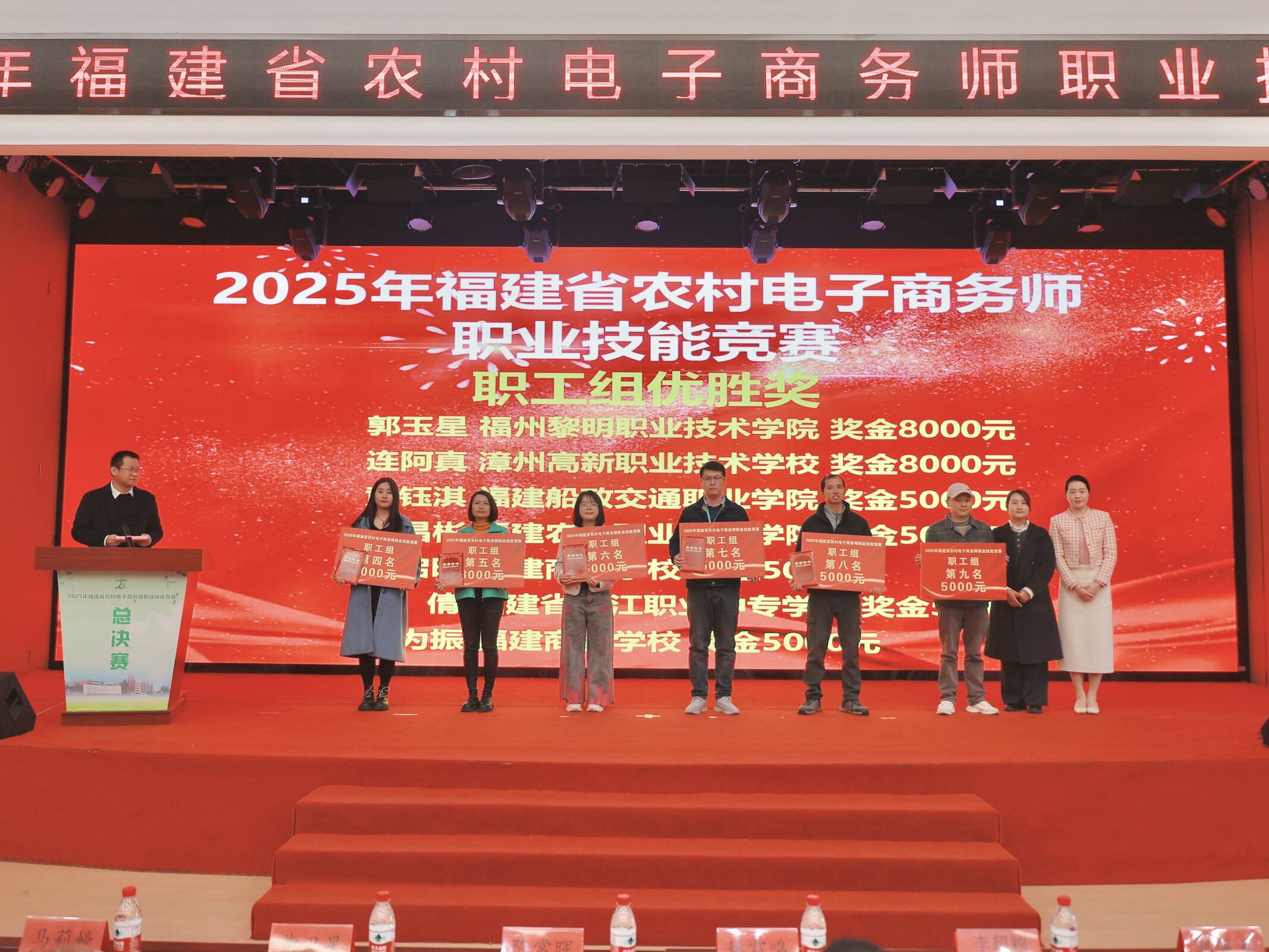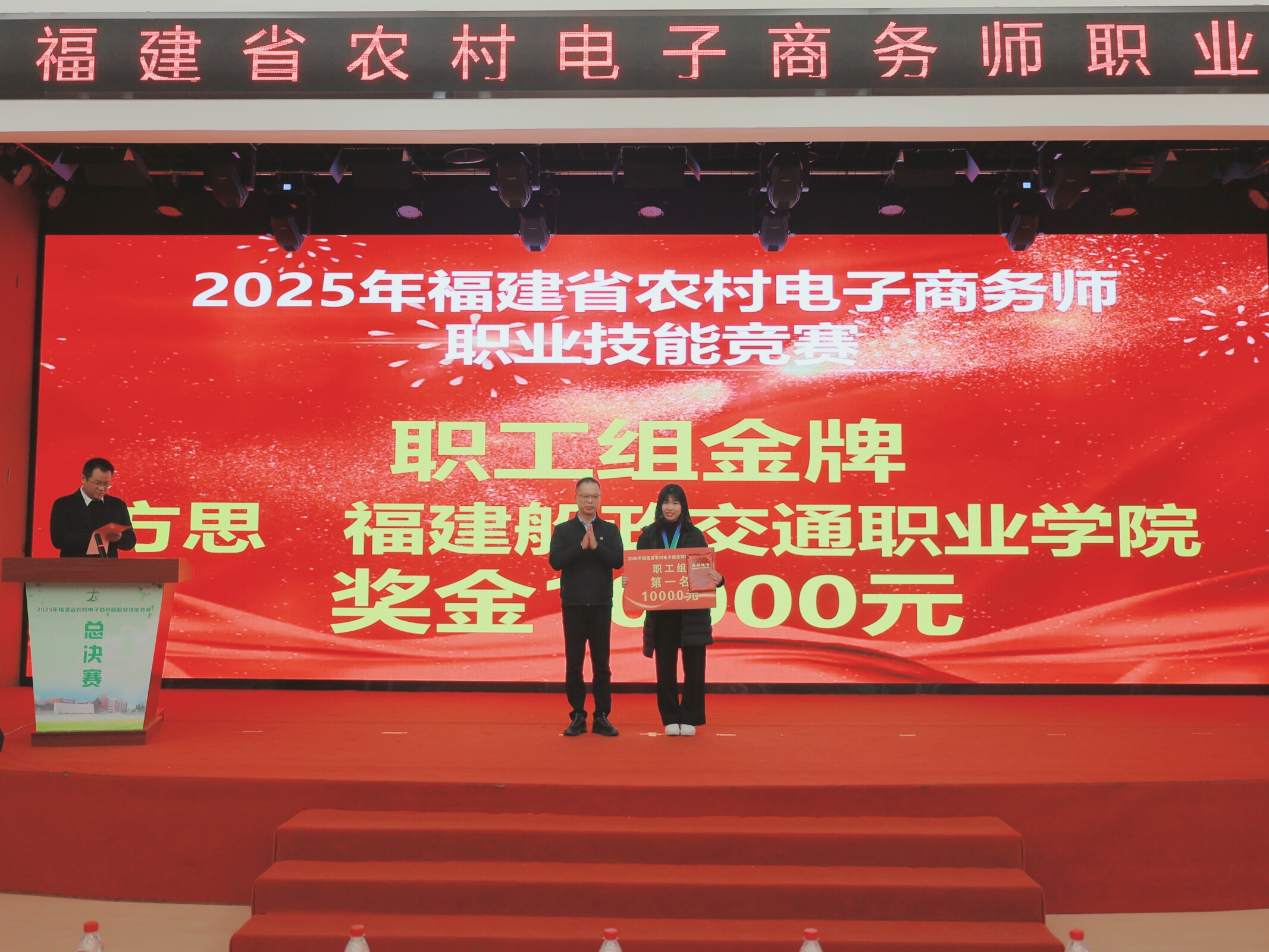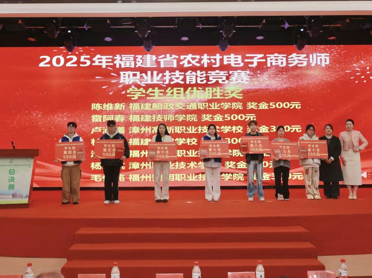 2026年1月10日-11日,由福建省商務廳、福建省人力資源和社會保障廳、福建省教育廳、福建省總工會、共青團福建省委聯(lián)合主辦,福建船政交通職業(yè)學院經(jīng)濟與管理學院承辦的2025年福建省農(nóng)村電子商務師職業(yè)技能競賽圓滿落幕。學校憑借周密的組織安排與高效的賽事服務,保障了競賽全程嚴謹有序、公平公正,獲得主辦單位及各參賽隊伍的高度認可。我院選派師生在比賽中表現(xiàn)突出,方思老師榮獲大賽第一名(金獎),黃鈺淇老師與學生陳偉鑫均獲得優(yōu)勝獎,實現(xiàn)了賽事承辦與競賽成績的雙重豐收。