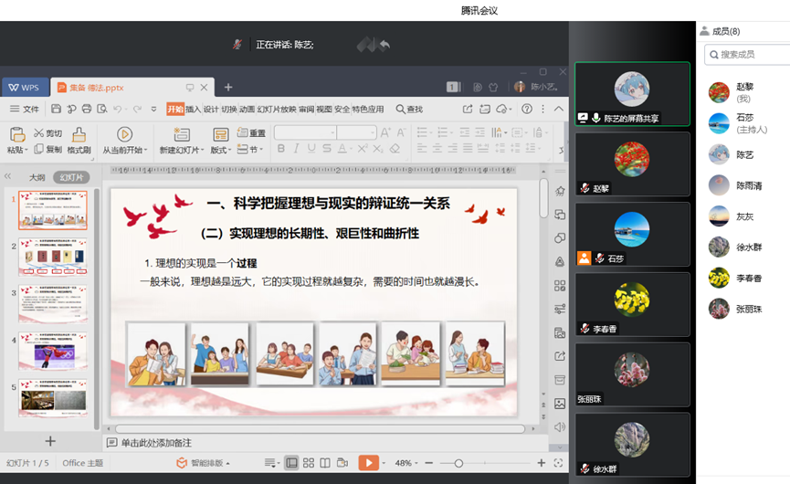 接著,陳雨清老師和陳藝?yán)蠋熥隽似谓虒W(xué)分享,《堅(jiān)持走中國特色社會主義道路》和《實(shí)現(xiàn)理想的艱巨性、長期性、曲折性》,雨清老師和陳藝?yán)蠋熱槍@兩個部分的教學(xué)做了充分的準(zhǔn)備,教學(xué)效果良好。