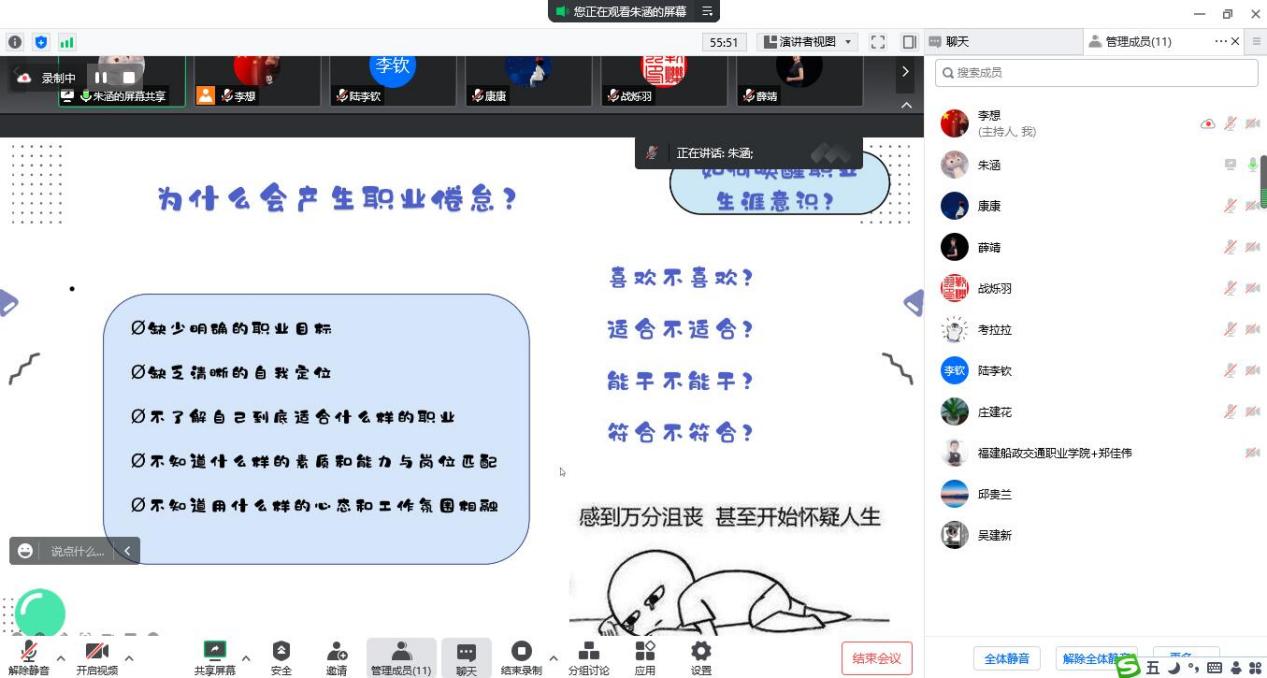 最后在場(chǎng)的專兼職教師對(duì)本模塊內(nèi)容的教學(xué)難點(diǎn)、疑問開展了經(jīng)驗(yàn)交流和討論,大家表示本次教研活動(dòng)形式新穎、效果突出,通過大家的交流和分享均收獲良多。同時(shí),本次線上會(huì)議通過信息化技術(shù)開啟了現(xiàn)場(chǎng)錄制,方便老師們重復(fù)觀看,提升了教研活動(dòng)的質(zhì)量。