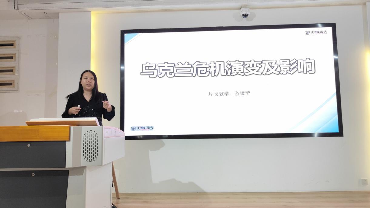 林森茂老師和游鏡瑩老師分別針對“烏克蘭危機(jī)中堅定的中國立場”和“激烈的多維較量”進(jìn)行了無生片段教學(xué)。
