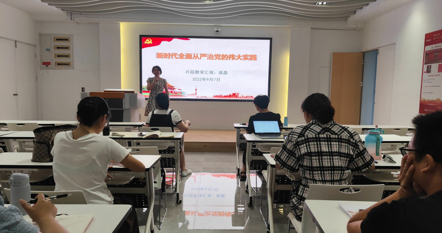 2022年9月7號上午,形勢與政策教研室舉行了本學(xué)期第一次集體備課會,由教研室主任嚴(yán)兵老師主持,藍(lán)素瓊老師就“形勢與政策”課第一專題“新時(shí)代全面從嚴(yán)治黨的偉大實(shí)踐”主講,梁晶老師和蘇梅貴老師進(jìn)行片段教學(xué),全體專兼職任課教師參加了會議。會議分為兩個(gè)階段。