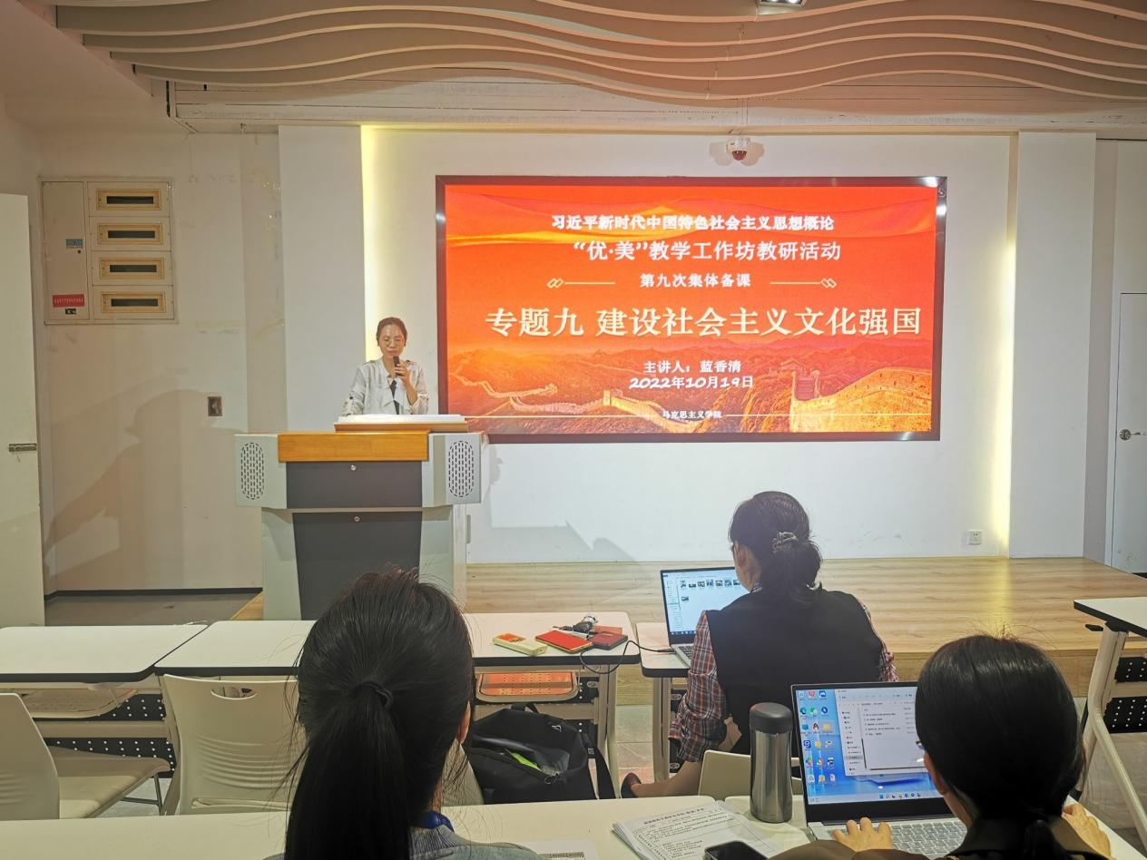 2022年10月19日,馬克思主義學(xué)院毛澤東思想和中國特色社會(huì)主義理論體系概論教研室教師開展習(xí)近平新時(shí)代中國特色社會(huì)主義思想概論課程專題九的集體備課會(huì)。集體備課會(huì)以“主備發(fā)言--集體討論--片段教學(xué)--教學(xué)反思整改”為模塊順序進(jìn)行。主備課教師藍(lán)香清老師認(rèn)真學(xué)習(xí)鉆研教學(xué)資料的基礎(chǔ)上,針對(duì)本校學(xué)生學(xué)情展開分析。對(duì)于建設(shè)社會(huì)主義文化強(qiáng)國專題在本課程中所處地位、教學(xué)目標(biāo)、教學(xué)重難點(diǎn)、教學(xué)過程設(shè)計(jì)等方面也說了自己的想法,并在其他老師的補(bǔ)充指導(dǎo)下整改完成了教案。