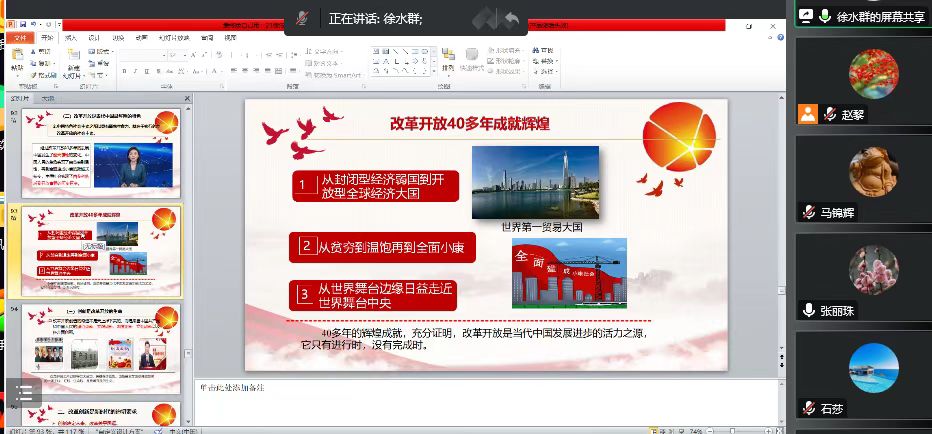 2022年11月30日下午2:30,思想道德與法治教研室舉行了本學期最后一次集體備課會,由于疫情原因,本次集備采用線上方式開展,由教研室主任李春香老師主持,徐水群老師主講,內(nèi)容為《思想道德與法治》第三章第二三節(jié)“做新時代的忠誠愛國者,讓改革創(chuàng)新成為青春遠航的動力”,全體專兼職教師參加了此次集體備課會。