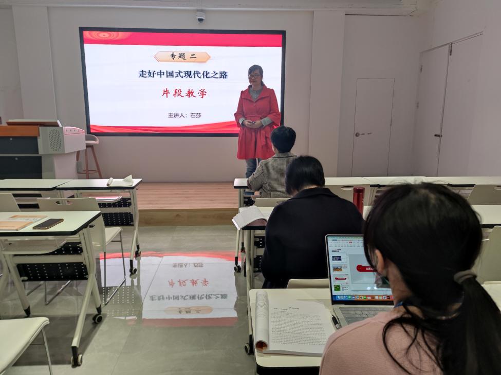 2023年3月9日,馬克思主義學(xué)院“形勢(shì)與政策”教研室在黨建館開展了本學(xué)期“優(yōu)·美”教學(xué)工作坊第二次教研活動(dòng)。本次教研活動(dòng)圍繞“形勢(shì)與政策”課專題二“走好中國式現(xiàn)代化之路”展開,由嚴(yán)兵老師主講,石莎和梁晶老師進(jìn)行無生片段教學(xué),全體任課教師參加了教研活動(dòng)。