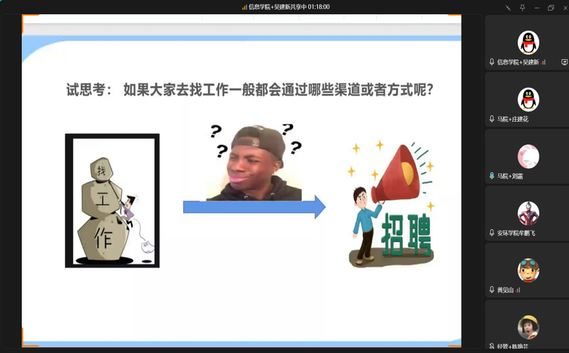 接著,吳建新老師針對畢業(yè)生獲取就業(yè)信息的渠道和方法進(jìn)行了片段教學(xué)。