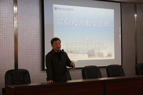 陳貞健副院長出席并講話,他在講話中指出:當(dāng)前國家大力推進(jìn)信息化教學(xué)手段在教育教學(xué)改革中的應(yīng)用,學(xué)院也給予高度重視,希望全體教師能夠從思想上重視信息技術(shù)教學(xué)手段的改革,結(jié)合自身課程實(shí)際,大力開展相應(yīng)的研究和改革工作,學(xué)院將陸續(xù)制定相應(yīng)的配套制度,加強(qiáng)在職稱評定、效能考核等方面的建設(shè),營造信息化教學(xué)改革的氛圍。