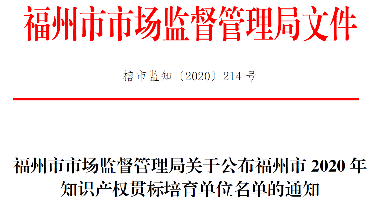 根據(jù)國家、省、市相關疫情期間支持復工復產(chǎn)文件通知要求和《福州市自主知識產(chǎn)權資助和獎勵辦法》(榕政綜[2018]210號)精神,經(jīng)申請,福州市知識產(chǎn)權局、市場監(jiān)管局推薦,我校被確定福州市2020 年知識產(chǎn)權貫標培育單位。