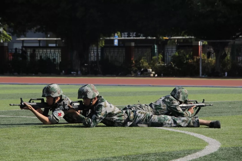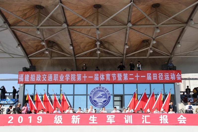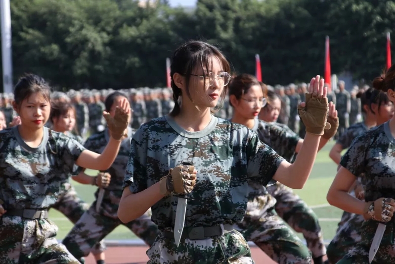 上午9時(shí),2019級(jí)6400余名學(xué)生身著軍訓(xùn)服裝,在軍訓(xùn)旗的引領(lǐng)下,踏著分列式進(jìn)行曲的鼓點(diǎn),步伐整齊、精神高昂、口號(hào)響亮地走向主席臺(tái)接受領(lǐng)導(dǎo)來賓的檢閱。緊接著,進(jìn)行了匕首操、隊(duì)列示范、擒敵拳、戰(zhàn)術(shù)演練、千人方陣表演。千人方陣表演,由1000名軍訓(xùn)新生組成的方陣,先后擺出“1866、2019、153、?;铡⑽幕?、創(chuàng)新船政、質(zhì)量船政”等形態(tài),用整齊劃一的動(dòng)作、新穎的造型、響亮的口號(hào)贏得全場(chǎng)陣陣掌聲。