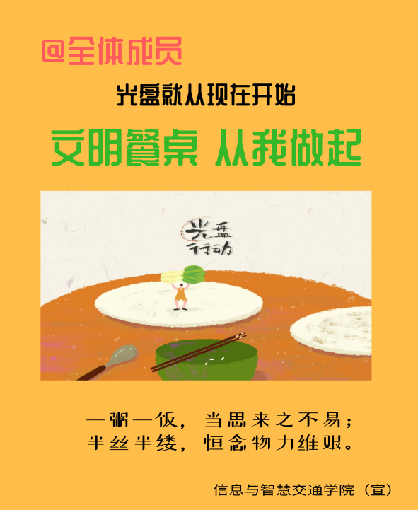 為認(rèn)真落實(shí)習(xí)近平新時(shí)代中國(guó)特色社會(huì)主義思想和黨的十九大精神,深入實(shí)施國(guó)家糧食安全戰(zhàn)略,建立健全糧食安全宣傳教育長(zhǎng)效機(jī)制。信息與智慧交通學(xué)院開展了一系列糧食安全宣傳周教育活動(dòng)。本次糧食安全宣傳周教育活動(dòng)緊密圍繞“端牢中國(guó)飯碗 共端筑全球糧安”的主題,經(jīng)過(guò)我院認(rèn)真籌備,細(xì)心規(guī)劃,2020年糧食安全宣傳周教育一系列活動(dòng)圓滿落幕。
