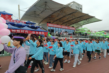 隨著院長(zhǎng)宣布運(yùn)動(dòng)會(huì)正式開始,全體師生起立行注目禮舉行升旗儀式,國(guó)旗在嘹亮的國(guó)歌聲中冉冉升起,禮畢后。各個(gè)二級(jí)學(xué)院在激昂的運(yùn)動(dòng)員進(jìn)行曲中開始了走方陣,其中信息與智慧交通學(xué)院壓軸出場(chǎng),他們排列著整齊的方陣,邁著矯健的步伐,緩緩?fù)ㄟ^(guò)主席臺(tái),接受學(xué)校領(lǐng)導(dǎo)檢閱,信息學(xué)院的學(xué)子們充分展示了“求是自強(qiáng),求實(shí)創(chuàng)新”的精神風(fēng)貌。