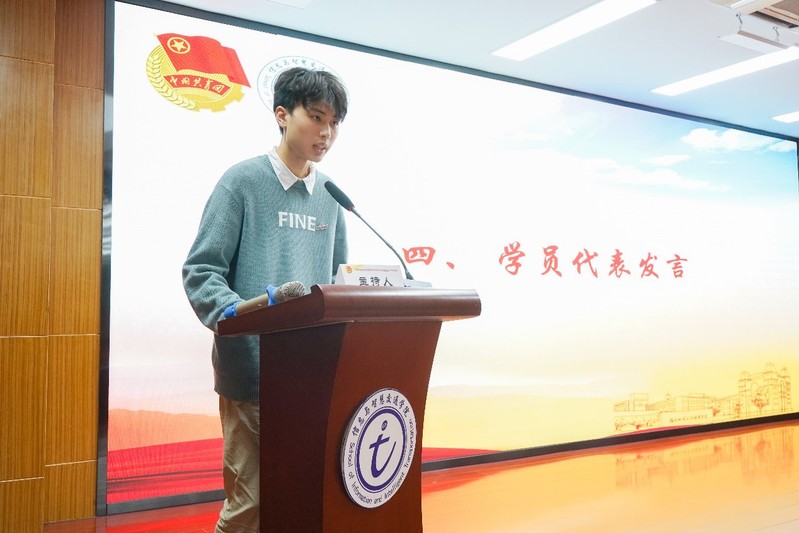 20級軟件技術(shù)4班劉棋同學(xué)代表全體學(xué)員發(fā)言并向團組織表態(tài):嚴(yán)格遵守團校各項規(guī)定,堅定信念,主動學(xué)習(xí),積極行動,做到胸中有目標(biāo),腳下有承諾,時刻鞭策自己,經(jīng)受住各方面的考驗,爭取早日加入共青團。