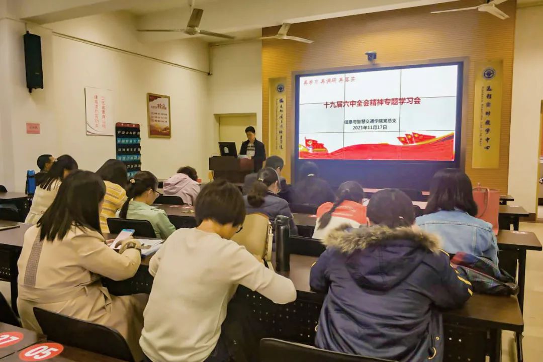 2021年11月17日,信息與智慧交通學(xué)院在2號(hào)樓2-1召開(kāi)“學(xué)習(xí)十九屆六中全會(huì)精神”專題學(xué)習(xí)會(huì),使會(huì)議精神深入每一位師生的心中。