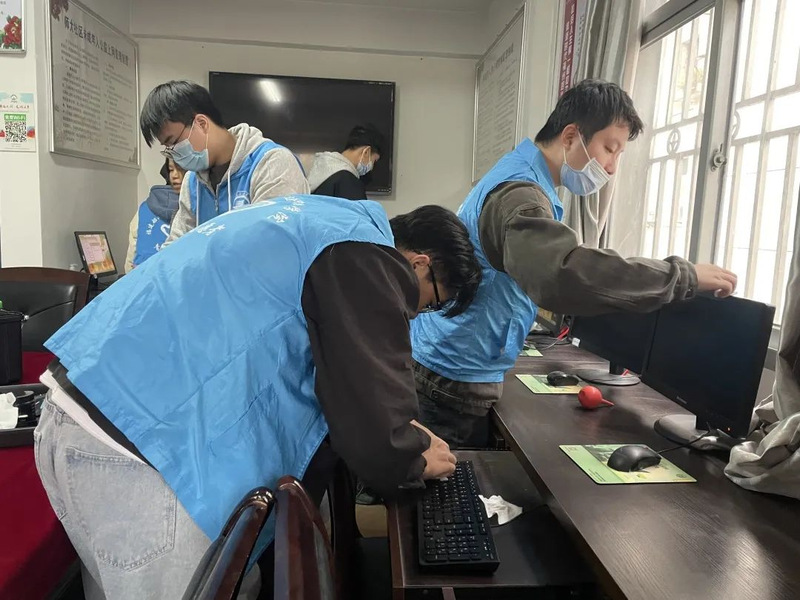 看這些身穿藍(lán)衣馬甲的志愿者們正在認(rèn)真