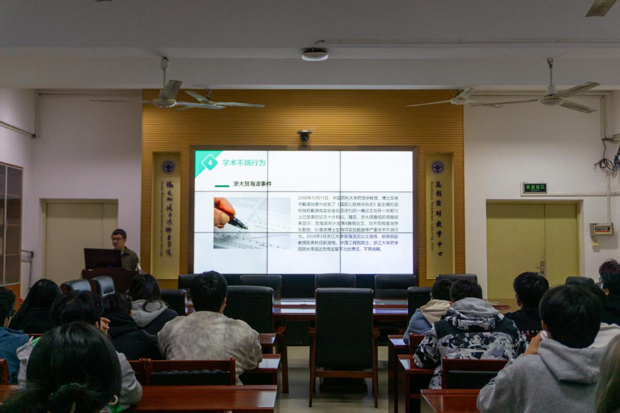 講座中,王健老師聚焦學(xué)術(shù)實(shí)踐中的常見問題,針對(duì)引用不規(guī)范、內(nèi)容抄襲片段拼接等現(xiàn)象,細(xì)致講解學(xué)術(shù)引用格式、注釋規(guī)范及文獻(xiàn)借鑒邊界,幫助同學(xué)們掌握“合理借鑒、規(guī)范標(biāo)注”的實(shí)操方法。隨后,他通過浙大賀海波論文造假、于艷茹論文抄襲等典型案例,剖析學(xué)術(shù)不端行為的成因、危害及嚴(yán)重后果,結(jié)合高校學(xué)術(shù)違規(guī)處理規(guī)定為同學(xué)們敲響警鐘,引發(fā)廣泛警醒與討論。講座最后,王健老師向全體學(xué)生發(fā)出倡議,呼吁大家將學(xué)術(shù)規(guī)范內(nèi)化為自覺行動(dòng),堅(jiān)守誠信治學(xué)底線,共同營(yíng)造風(fēng)清氣正、求真務(wù)實(shí)的校園學(xué)術(shù)環(huán)境。