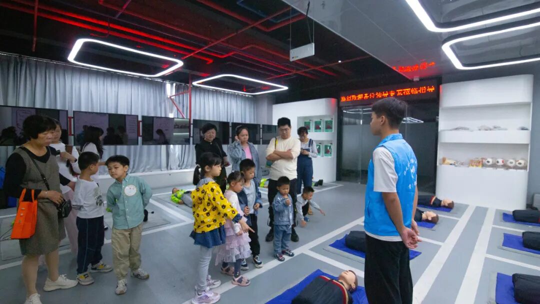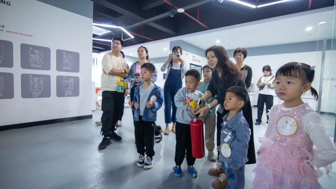 公共安全產(chǎn)教融合實訓(xùn)基地內(nèi),家長和孩子實地探訪,了解火災(zāi)、臺風(fēng)、地震、電梯墜落、交通事故等生活中可能出現(xiàn)的意外場景。通過觀看粉塵爆炸實驗與建筑消防系統(tǒng)演示,家長與孩子共同掌握燃燒與爆炸的基本原理及防范措施。在安全與環(huán)境學(xué)院老師的指導(dǎo)下,家長和孩子攜手學(xué)習(xí)快速穿戴防毒面罩、火場逃生技巧及創(chuàng)傷包扎救護技術(shù),熟悉創(chuàng)傷包扎工具的使用方法,完成相關(guān)操作練習(xí)。