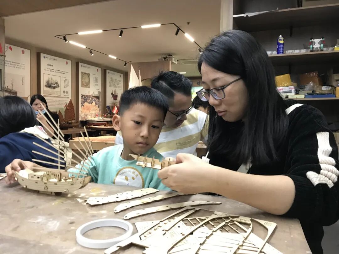 心瀾船社內(nèi),蒼霞社區(qū)的家長和孩子們在專業(yè)老師指導(dǎo)下,專注投入船模制作。從木材加工起步,經(jīng)切割、拼接等精細步驟,逐步搭建船模雛形。老師細致講解龍骨搭建、船帆固定等制作要點,讓孩子在實踐中感知造船工藝的精妙,大家相互協(xié)作、共克難題,現(xiàn)場氛圍熱烈。船模作品的完成,既展現(xiàn)了協(xié)作的實操能力,也為孩子們的探索之路揚起了新的風(fēng)帆。